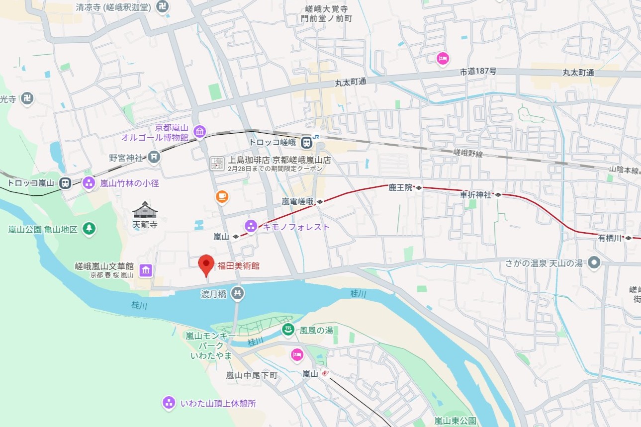 福田美術館の最寄駅は、嵐電(らんでん)の嵐山駅でございます。