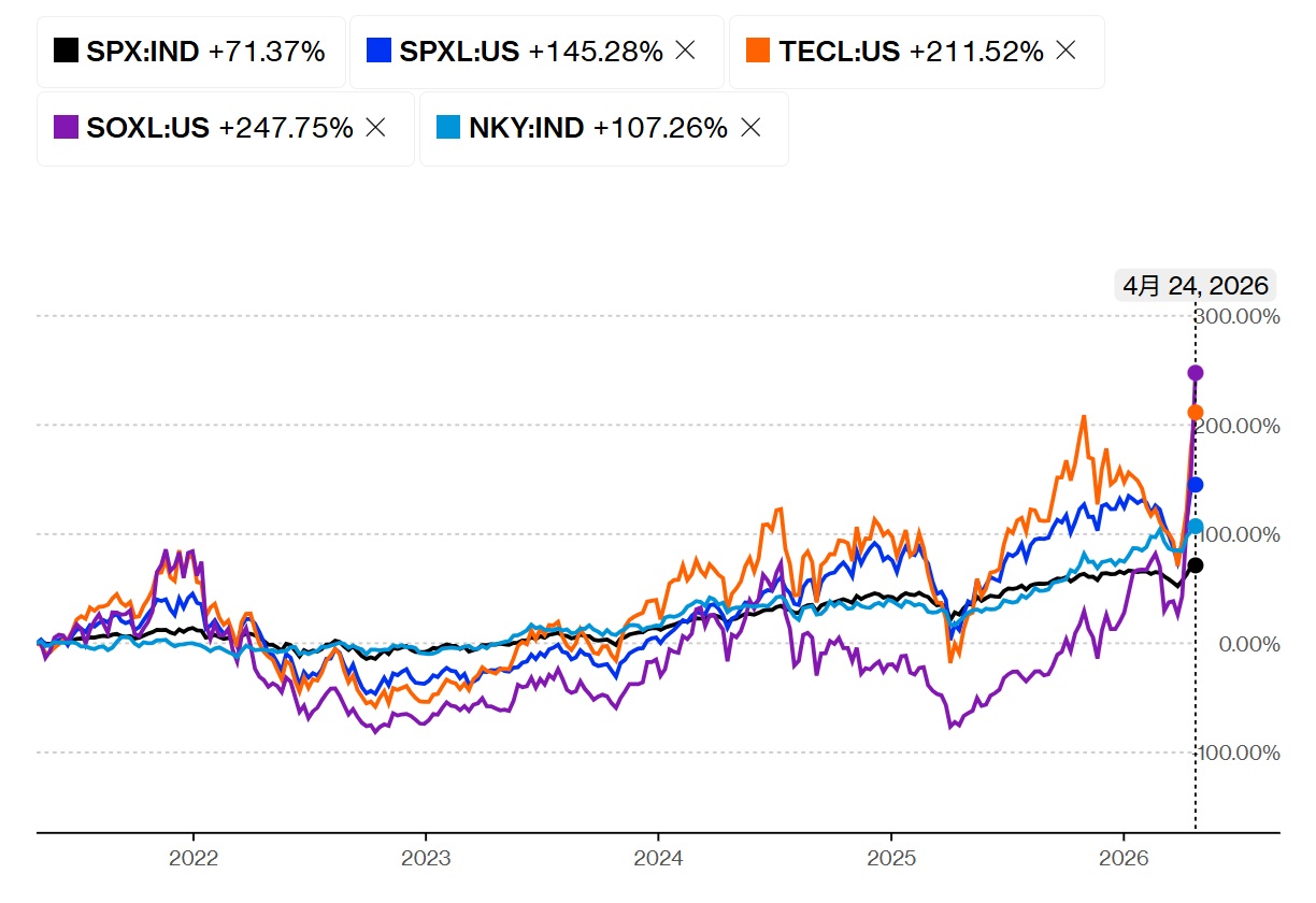 【SOXL】逓減リスクもなんのその、直近5年でも首位に立ったレバレッジETF【戦況報告】2026年4月24日終値現在
